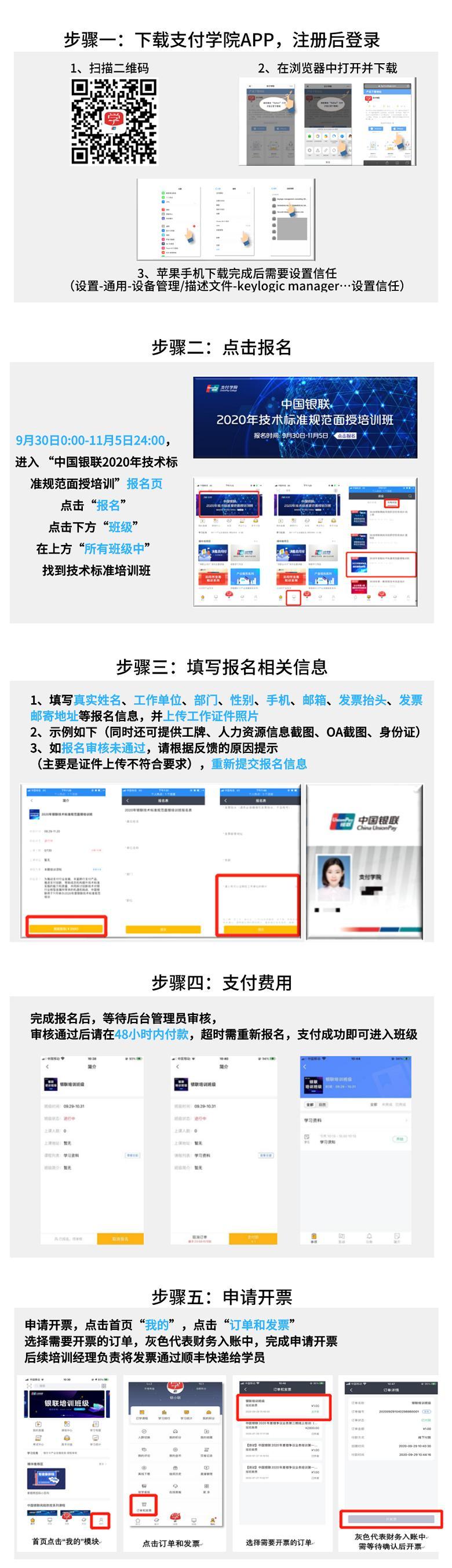 感兴趣的学员请在11月5日前扫描下方二维码下载“支付学院APP”,注册后登陆点击“2020年银联技术标准规范面授培训班”专题,完成报名和缴费。不会弄?没关系,在文末我们准备了“报名及缴费指引”,贴心指导您的每一步操作!