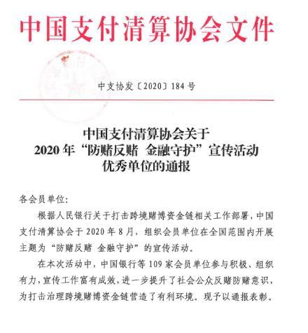 近期,中国支付清算协会对2020“防赌反赌金融守护”宣传活动中参与积极、组织有力、表现优异的单位进行通报表彰,汇聚支付以多形式、多渠道的持续宣传获得了充分的肯定,获评2020年“防赌反赌 金融守护”宣传活动优秀单位,工商银行、银联等多家单位一同获得表彰。