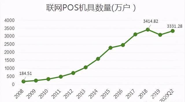 在行业增速方面,作为第三方支付收单机构的联网POS机具数量,近年来增速开始呈现出放缓,可见该行业正向饱和水平靠拢。