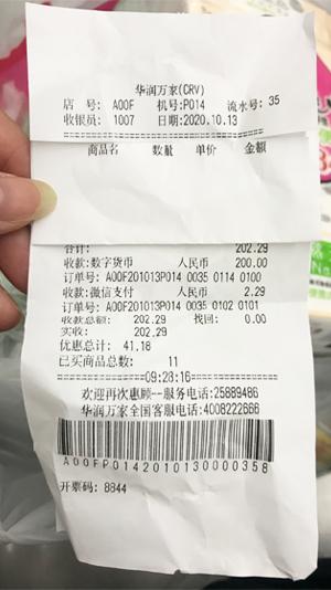 第二天就直奔罗湖春风万家超市,采购了一些肉菜和零食,准备结帐时确认一下,“可以用中签的数字货币付款,是吗?”,收银员惊讶的看着我,“中签了?! 幸运哈!” “是的,还真是挺幸运的,我也没想到!“