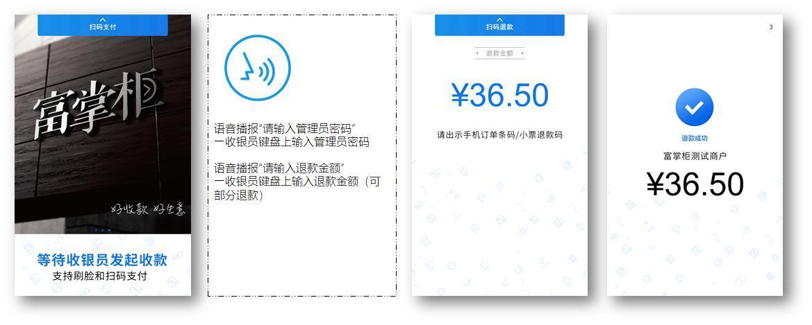 收银员通过简单的几部操作,就能轻松完成收退款操作,尤其适用于餐饮、零售、时尚、超市 等商户场景。
