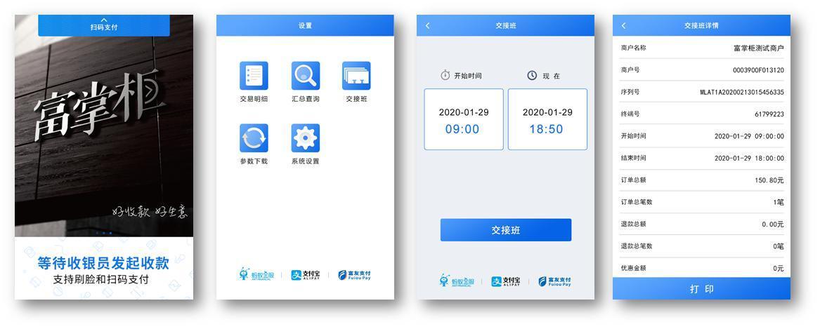 富掌柜刷脸终端独立收银支持交易明细查询、交易详情操作和交易汇总查询以及交接班功能,帮助商户轻松解决收银对账难题。
