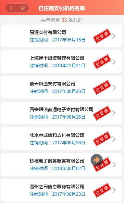 近年来,监管部门通过支付业务许可证续展,加大了市场退出力度。此前已有33张支付牌照被注销,在御嘉支付、艾登瑞德注销后,支付牌照剩余数量将为235张。