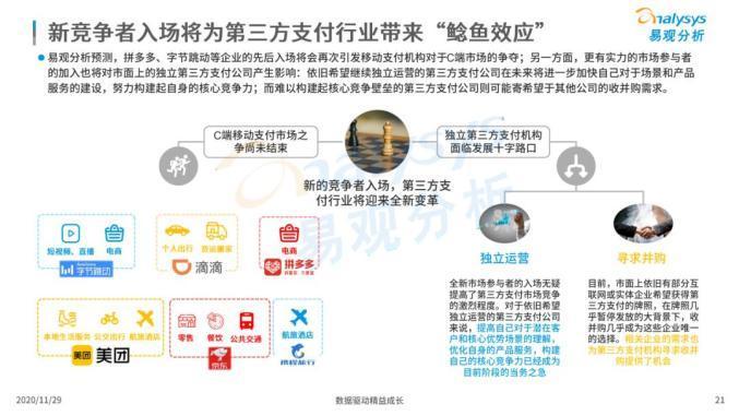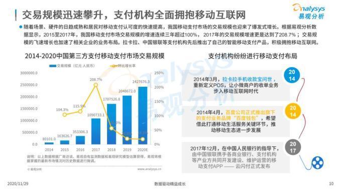 日前,易观发布了《2020年中国第三方支付行业发展趋势洞察》报告。