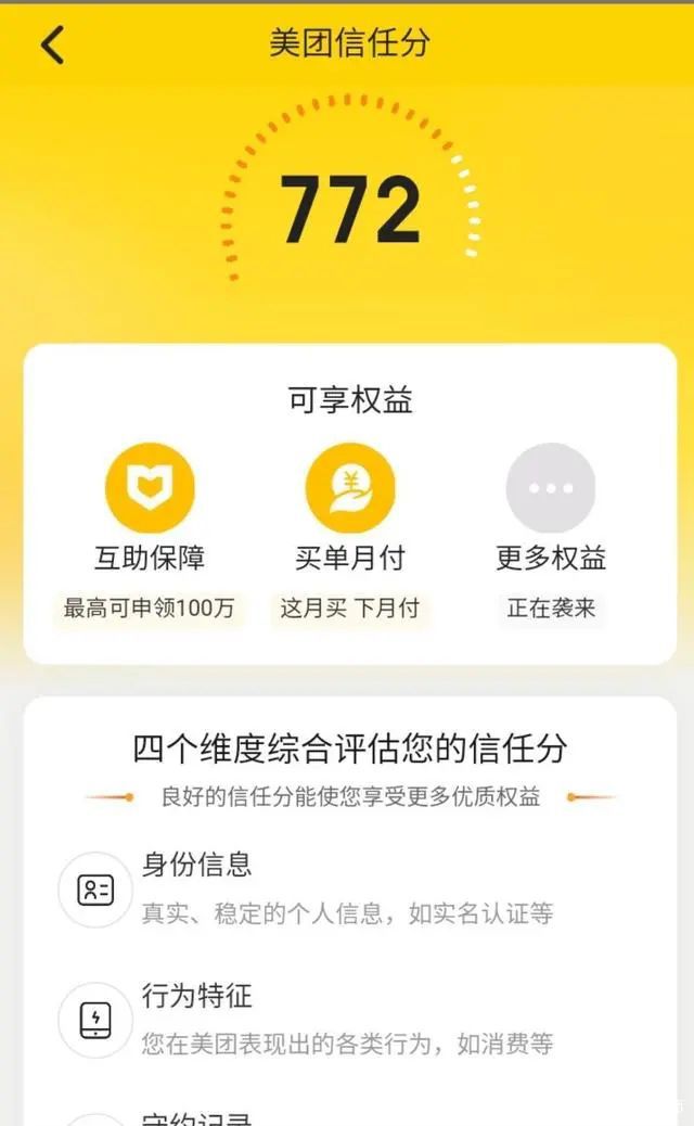 如美团,其在今年4月份测试“美团信任分”,试图建立自己的商业信用体系,紧接着在5月份美团上线“美团月付”功能。近期滴滴也开始试水信用支付,上线了“滴滴月付”功能,并且不设额度限制。