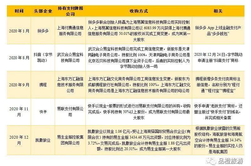 2020年金融支付领域的“风起云涌”不限于此,通过收购公司取得支付牌照也并非携程的专利。