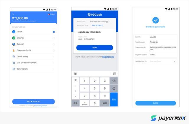 目前在第三方网关PayerMax可以接入Gcash,支付流程如下: