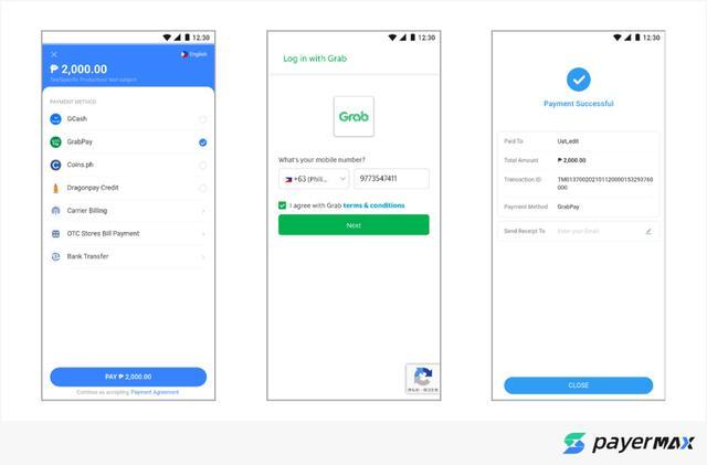目前在第三方网关PayerMax可以接入GrabPay,支付流程如下: