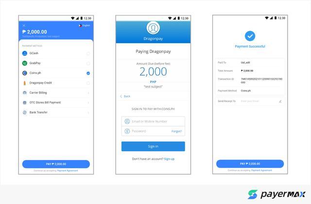 目前在第三方网关PayerMax可以接入Coins.ph,支付流程如下:
