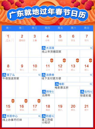 广东就地过年春节日历来了 上万家机构春节在线不打烊