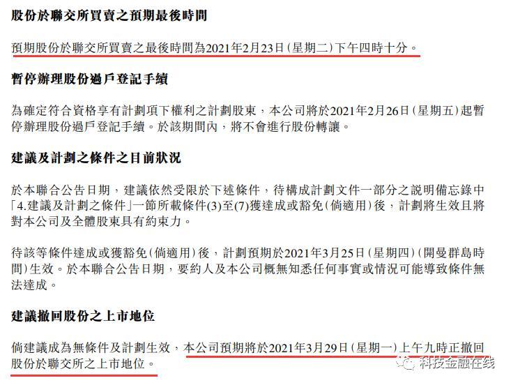 汇付天下表示,预计其股份于港交所买卖的最后时间为2月23日(下周二)下午四时十分,预计将于3月29日上午九时正撤回股份于港交所的上市地位。