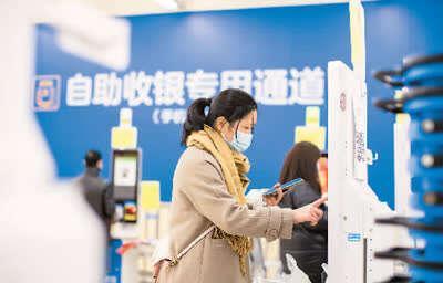 重庆市沙坪坝区的沃尔玛超市凤天路店,市民在使用自助收银设备。