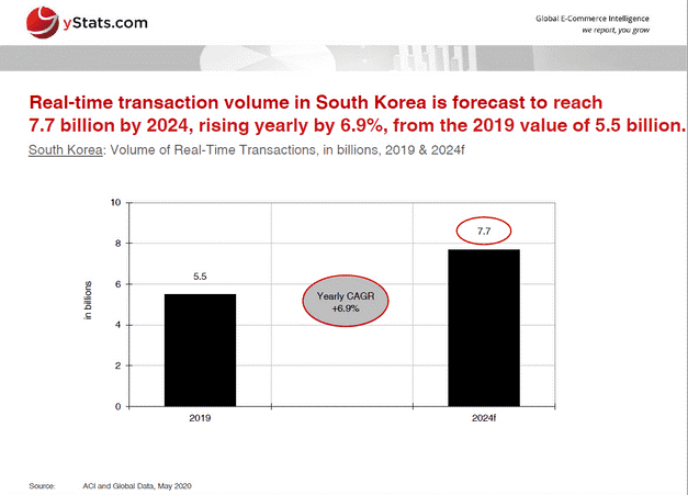 据预测,到2024年韩国的实时交易量将达到77亿次,较2019年的55亿次增长6.9%。