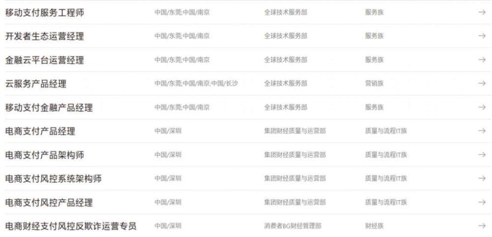 华为支付招聘岗位,图源华为官网
