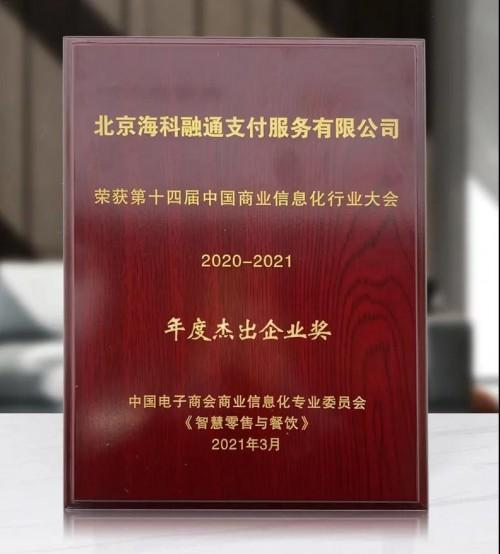 海科融通成立于2001年,是北京翠微大厦股份有限公司(证券代码:603123)旗下控股子公司,是一家专业面向中小微商户、为行业提供完整支付解决方案及综合金融服务的高新技术企业。海科融通,迄今已走过近20年风雨历程,立足支付、以创新为源动力,见证了中国支付产业的发展及壮大,积累了雄厚的技术实力。在第十四届中国商业信息化行业大会暨展览会颁奖典礼上,海科融通不负众望,夺得2020-2021年度杰出企业奖,获得了广泛的肯定与好评。