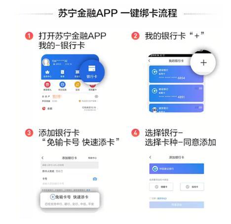 截至目前,在苏宁金融APP端,已支持中行、建行、农行、交行、邮储、光大、民生、浦发、招商、中信、平安、广发、江苏13家国内主流银行无卡签约。用户在添加银行卡时,选择“免输卡号 快速添卡”,无需输入银行卡号,仅需通过验证身份即可实现一键绑卡。当然,用户也可登录建行、农行、交行、民生、浦发、招行、中信7家银行对应APP,找到“一键绑卡”或“快捷支付”功能,选择绑定“苏宁支付”或“苏宁金融”,验证身份即可完成绑卡。