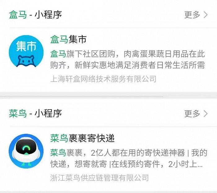 盒马、菜鸟的微信小程序