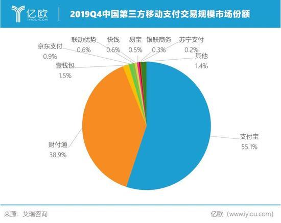 四年过去,“银联+手机Pay”的组合很明显并未撼动支付宝和微信支付的地位。据iResearch艾瑞咨询公布的数据显示,2019年第四季度,国内移动支付市场上,并未有任何一款手机厂商支付产品上榜。这也就意味着,没有一款手机厂商支付产品的市场份额达到0.2%。