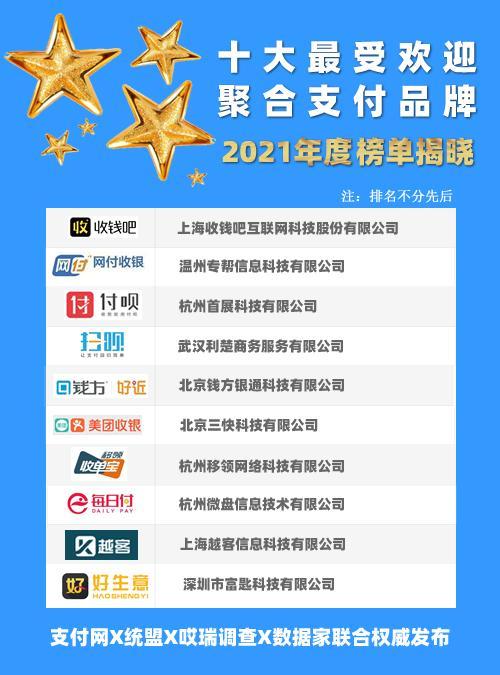2021年度十大最受欢迎聚合支付品牌榜单揭晓