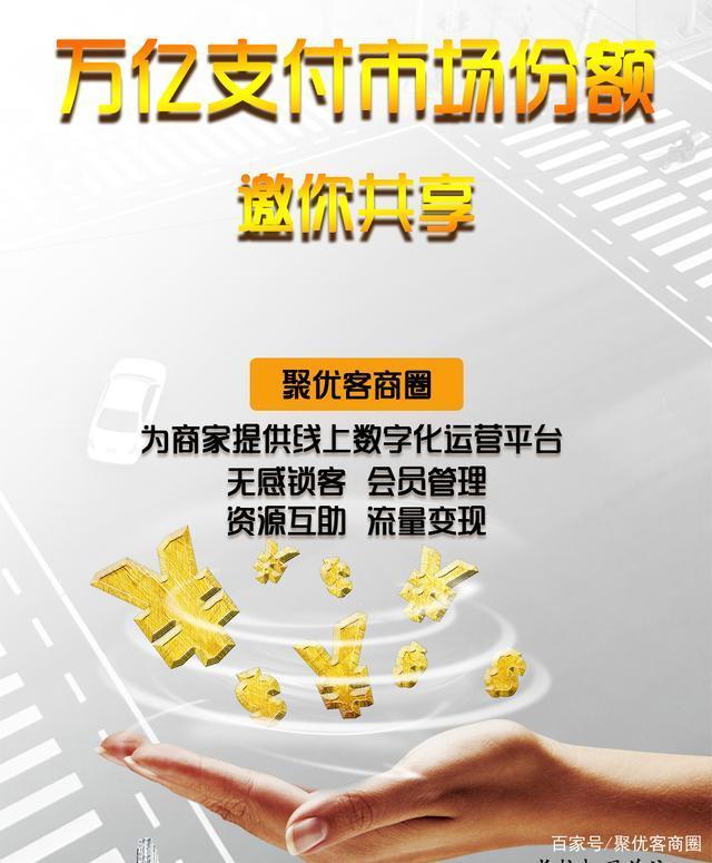 成为聚优客商圈合伙人,即可共享支付市场红利。聚优客商圈是以聚合支付为入口,来帮助商户实现收银管理、会员管理、锁客分润、网上商城、大数据分析的数字化平台。
