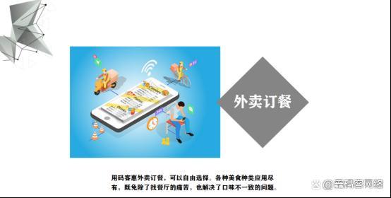 4.0版本开通外卖功能,线上入驻商家可选择是否支持外卖。使用码客惠外卖系统,没有平台扣费、