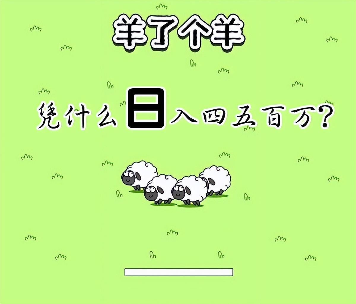 最近羊了个羊火爆了朋友圈,那一幕眼红了多少人!这么一个简单的小游戏。仅是手指点点的小游戏,日入四五百万啊。不是四五十,是一天收入400多万阿。不管你信不信反正他钱是赚到手了。他也不需要问你信不信。人么,永远赚不到你认知以外的钱。