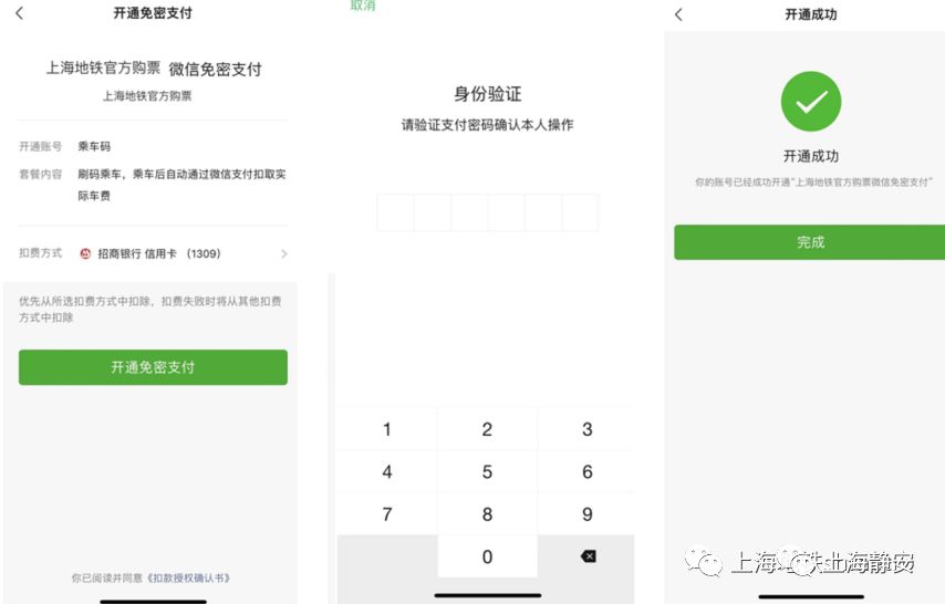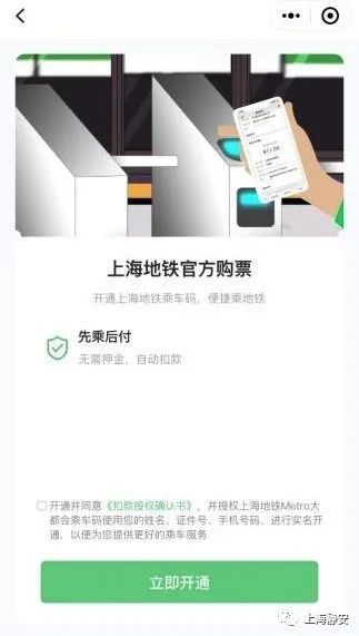 用户点击【去开通】按钮,依据页面提示,授权微信绑定手机号,授权成功后在弹窗中输入本人姓名、身份证号,完成地铁实名信息认证。并进入开通微信免密支付流程,输入支付密码完成验证后,即可使用地铁二维码乘车功能(详见下图)