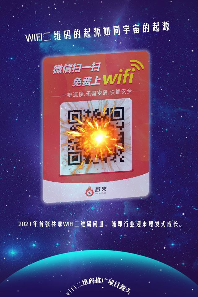 很多人好奇宇宙是怎么来的。同理,现在共享WIFI这么一个火热的风口,那么WIFI二维码是怎么来的呢。又是谁发明的呢?数据显示,共享WIFI创新模式即扫二维码一键即连模式是我国数字化经营头部企业温州专帮信息科技有限公司旗下微火智慧数字经营SAAS系统里的一个功能。微火是干什么的呢,是帮助线下商家转型做线上智慧数字经营的。很多商家问有没有解决便捷让消费者连接WIFI的问题。就出了这个扫码连WIFI的功能。无需费用投入。