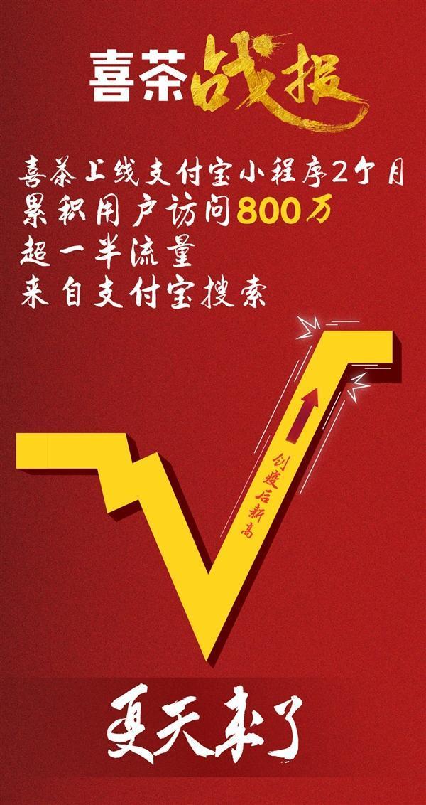 小程序如何抢到下一波流量红利?喜茶在支付宝上打开了新思路。今日,喜茶发布战报显示,其支付宝小程序「喜茶GO」上线仅2个月,累计用户访问超800万,其中五成来自支付宝搜索,在支付宝端交易额提升50倍,创疫后历史新高。