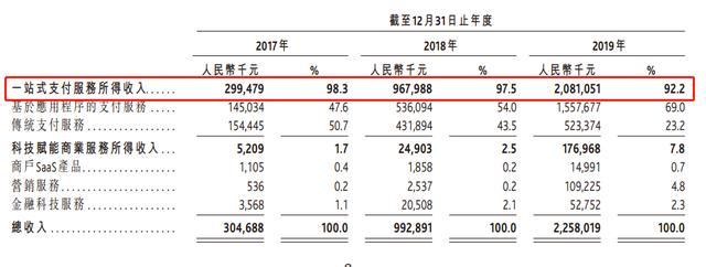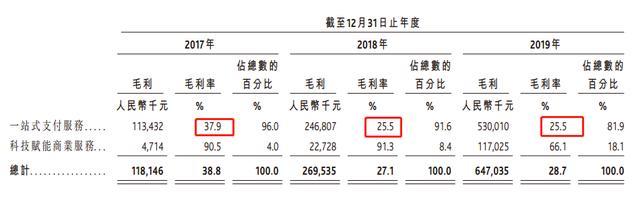 2019年末,移卡一站式支付服务所得收入20.81亿元(人民币,下同)、在总营收中占比92.2%;不过,值得注意的是,主营支付业务毛利率,2019年为25.5%,相比2017年的37.9%大幅下滑。
