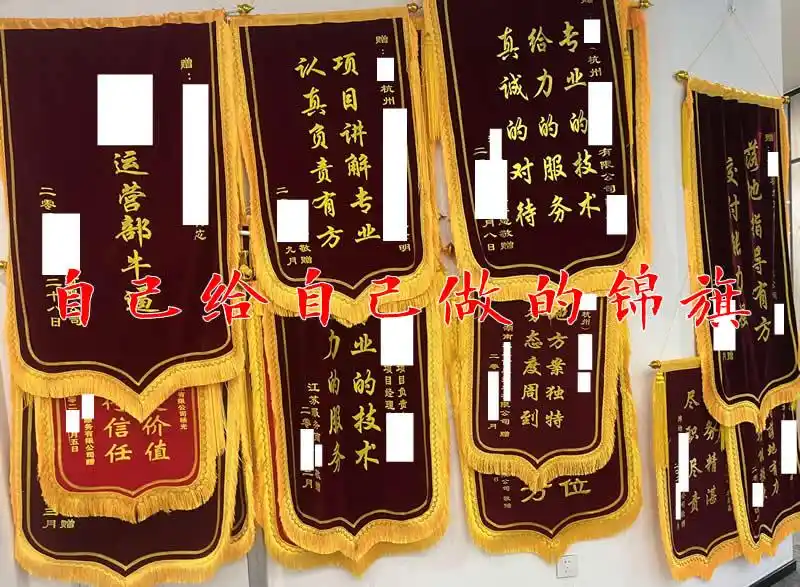 第二步,我们来到骗子公司,到处悬挂着某某服务服务商送给他们的锦旗,大家来看照片。我们这里不针对任何公司,因为这20多家公司,公司装修锦旗都是一致的。以锦旗来迷惑你,这些服务商都挣大钱了,都在感谢他们。