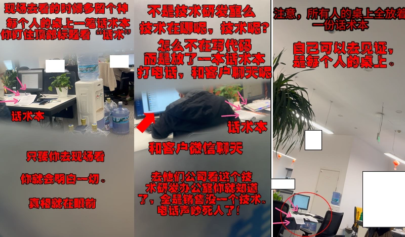 如果你去参观看到这样的全域运营地图墙面,那么恭喜你中招了,这20多个公司可都是这样的墙面,我这一揭发,估计他们连夜动工要更改装修墙内容了。下面,你参观公司要多留个心眼。他们要么号称自己技术研发中心在华北,要么办公司挂个技术部,里面其实全部是乌压压的在打电话邀请小白到公司参观。每个人的桌前放着一本洗脑话术。就如同缅甸的诈骗集团一样。整公司就没有一个技术。系统全部是东一个西一个买的包装成项目。