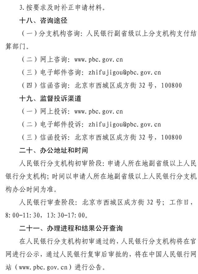 支付曝光台(ZFBGT.COM)讯:我们从人行官网了解到,6月5日,央行发布《支付业务许可证》核发审批事项服务指南,指南详细规定了支付业务许可证的适用范围、审批依据、申请条件、办理流程等事项。