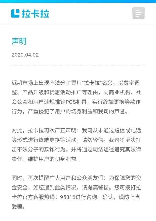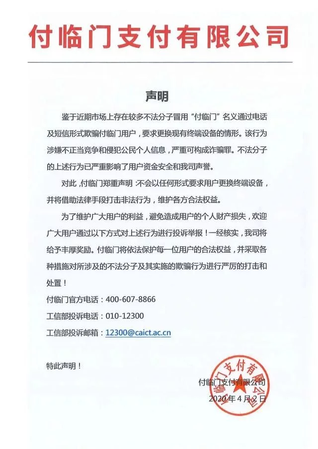 国内疫情尚未结束,电销,网销,短信营销POS机便已开始狂轰乱炸,不少平台打着支付机构官方旗号,发布欺诈信息骗取钱财。针对此种情况,多家支付公司紧急发布声明,提醒用户切勿贪图便宜上当受骗!