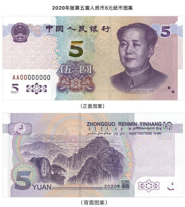 7月8日行发布公告,定于2020年11月5日起发行2020年版第五套人民币5元纸币。