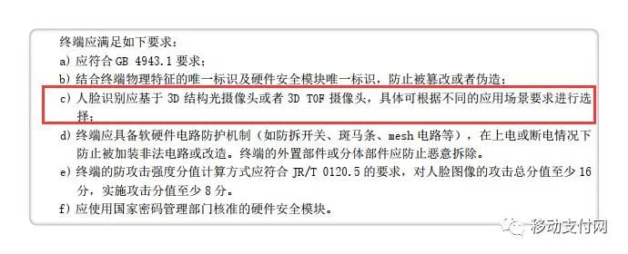人脸识别应支持活体检测,采用3D结构光或3D TOF摄像头
