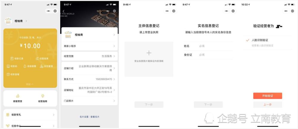企业/个体商家申请“商家小程序”时,只需打开“收款小账本”小程序,点击顶部左上角根据提示完善商家信息,即可获得专属的商家小程序店铺。