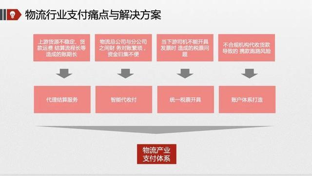 下面,我们会以物流产业为例进行分析,物流产业支付的发力点。