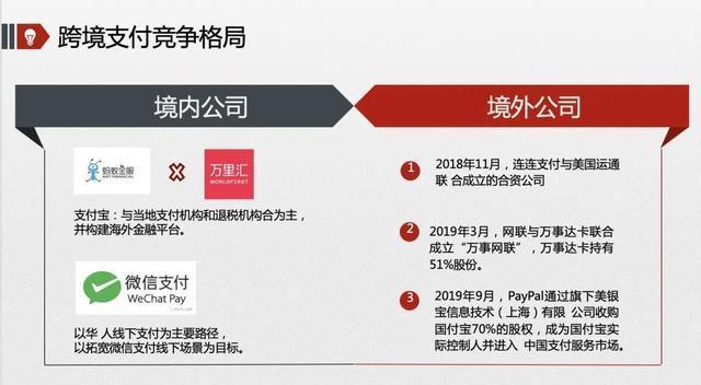 进入2019年,在蚂蚁金服收购World First以及Pay Pal收购国付宝两件支付行业事件的推动下,中国和海外支付机构间的竞赛正式拉开帷幕。