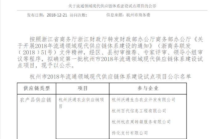 传化支付获得商务部认可,加快谋划产业规划布局,助力供应链金融发展。作为国家财政部、商务部确定的流通领域现代供应链体系建设试点城市,杭州市商务委根据申报情况,经过长达4个月的层层审核筛选,最终传化支付通过杭州市2018年流通领域现代供应链体系建设试点项目审批。