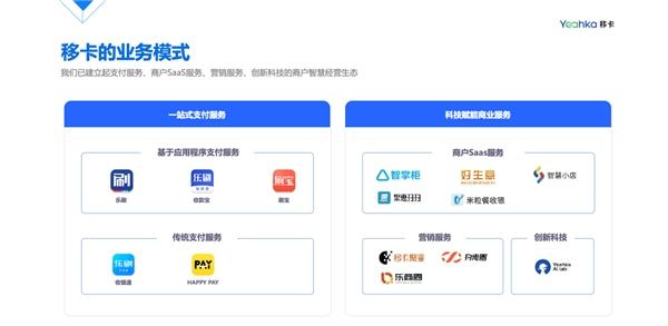 最开始,移卡以支付技术为切入口,给商户提供一站式支付相关的产品和服务。近几年,我们也在逐渐丰富业务内容,从单一的支付技术服务提供商,逐渐转变成综合的数字化商业服务商,每年我们都会增加一些新的业务。