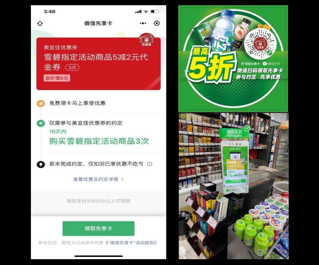 今年1月,基于微信支付分的“微信先享卡”正式上线,结合商户或品牌优惠提前锁定顾客,能有效提升转化频率,成为商家营销的“新玩法”。据统计,美宜佳与脉动的先享卡活动,券核销率达到58%。