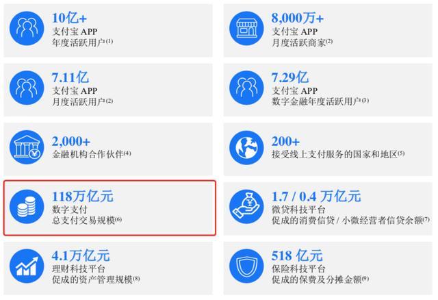 作为消费者日常生活和数字金融的基础设施,也是支付宝平台这一生态系统的基石,数字支付业务对拓展支付宝APP对于线上及线下用户的触达起到了至关重要的作用,扮演着将用户“领进门”的角色。