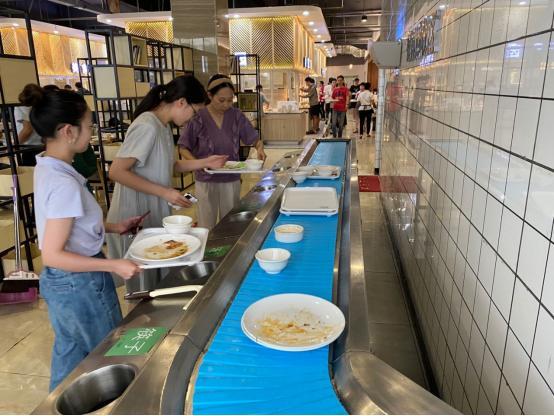“实现精准到克、无感支付,关键在于餐厅有一套智慧系统。”徐皓介绍,精准到克是通过“算法”来实现的,用餐的人夹菜的时候,自动称重系统会根据原重量减去现有的重量,计算出拿走的菜量,再乘以菜价,就可以算出单个菜品的费用。无感支付功能则是基于微信和支付宝“免密支付”,使得打菜、结账时不再需要长时间排队,大大提升了用餐的体验。