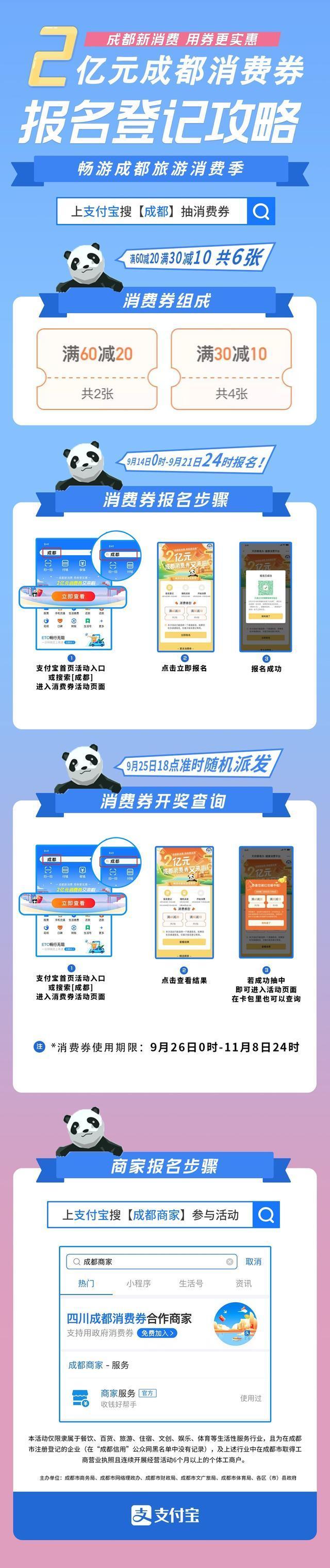 消费者需在9月14日0时-9月21日24时内,通过支付宝等平台进行报名,并在9月25日18:00之后查询消费券派发情况。