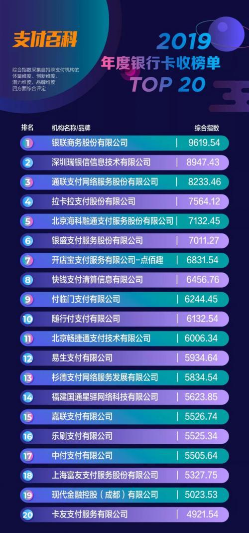 众所周知,中付支付之所以在行业中留下不错的名声,与它大力开展技术研究和产品升级分不开。2020年1月,由支付行业权威媒体“支付百科”公布了“2019年银行卡收单TOP”榜单中,中付支付凭借技术优势,以综合指数5505.64荣获“2019年银行卡收单TOP20”。据悉,该榜单是根据参榜企业的体量指数、创新指数、交易量/笔数指数、品牌指数这四个维度进行综合评测,榜单上的企业均为第三方支付行业中的佼佼者。