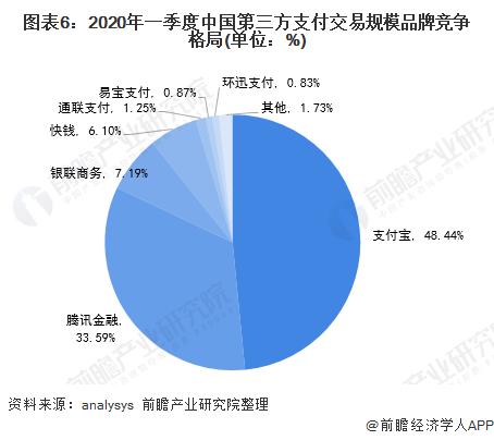 2020年一季度,支付宝、腾讯金融和银联商务分别以48.44%、33.59%和7.19%的市场份额位居前三位,三者市场份额总和达到89.21%,行业集中度较高。