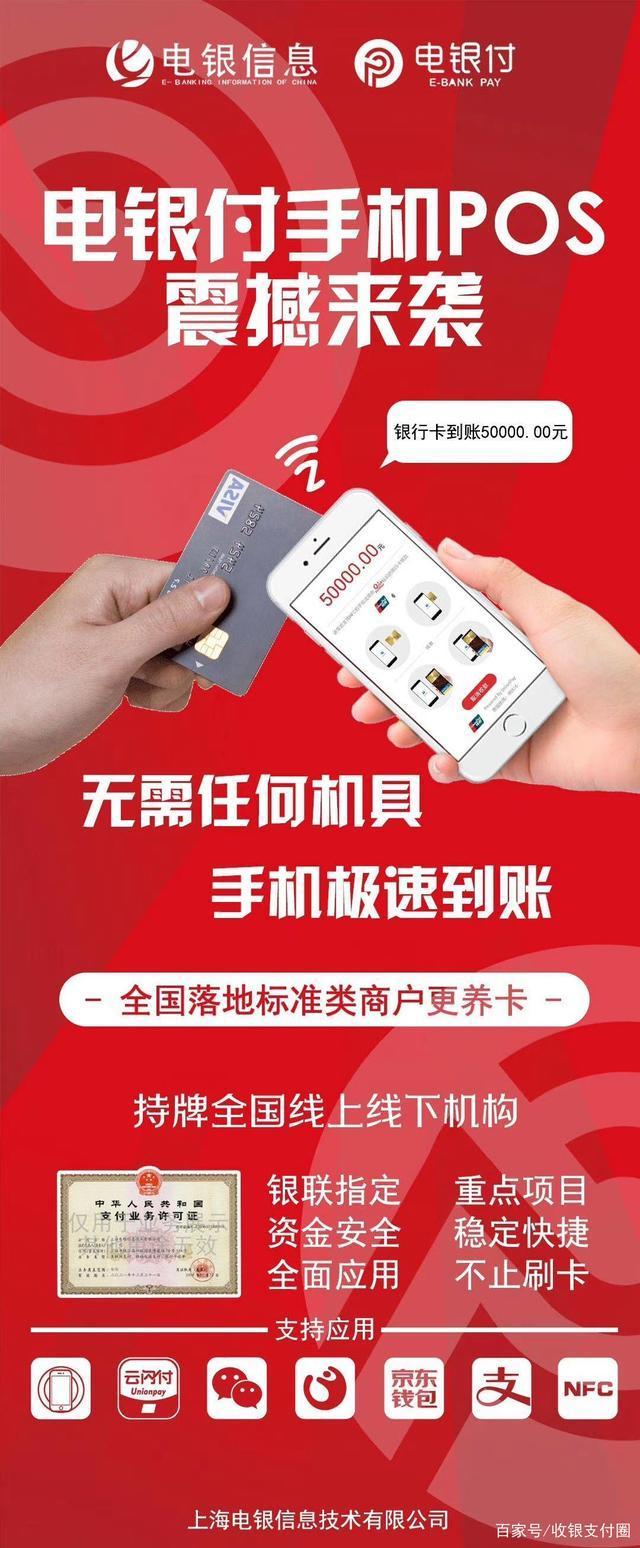 上海电银信息技术有限公司旗下“电银付”手机POS作为支付领域最前端的技术载体,经过银联安全认证,同时通过BCTC等专业机构安全检测。作为一款新型金融科技产品,集合了二维码、手机闪付、银行卡等目前市面上主流的支付方式,更便于持卡人支付。