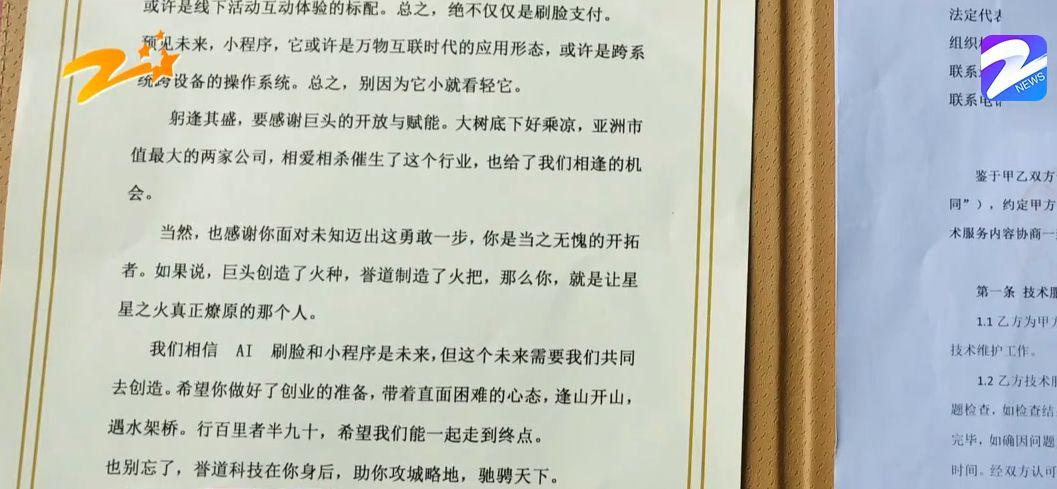 只要刷一下脸,就能完成付款。两个人觉得这个项目前景很好,今年9月8号,他们签了合同,付了12万9千多元的前期费用,成为杭州誉道科技的项目代理商。两个人希望将这项技术带回上海推广,但事情的发展出乎他们的意料。