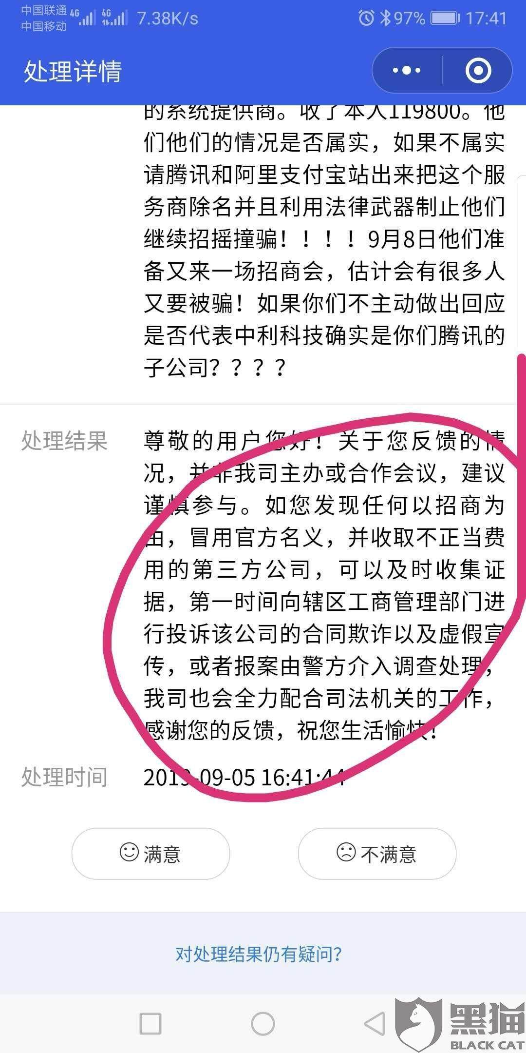 网友评价:江苏中理网络科技有限公司(以下简称中理或者中理科技)在抖音投放刷脸支付广告。本人看了之后留下电话,中理渠道经理蒋钱通过微信及电话邀请我参加他们7月8日的刷脸招商项目。 蒋钱在微信里称向本人称 1.他们是阿里和腾讯的系统提供商 2.是腾讯和阿里在他们公司召开的招商会 3.招商会讲师是阿里和腾讯的金牌讲师,兼任复旦大学教授 4.声称市面上做要做支付只能找两家,一家是他们中理,一家是创匠(说创匠价格贵而且技术落后,实际上投资后才知道可以做这个行业的资质不止两家!而且中理技术能力很弱) 以上四点骗取本人的信任(事实上我向腾讯和阿里求证,根本不存在以上三点,我是因为相信中理的这些背景才去参会并且交钱投资) 招商会和蒋钱都对刷脸支付的形式过分夸赞,让投资者以为行情很好。 刷脸支付要赚取佣金靠安装插件兼容商家原有收银系统或者直接换成中理的收银系统(事实上中理的收银系统根本没有库存功能,很多商家都不愿意用也不想换,只能装插件,而这个插件是一个叫做亚博松公司的,才1万九千八!卖给我们投资者却11万9800) 他们的客服不专业,怠慢,不理会客户要求协商的诉求,根本不知道协商退款该找谁,而且还在网络上要求各个平台封号。本人的抖音和微博都遭到了莫名其妙的封号,weihaix***@sina.com 就是本人微博号。他们这种虚假欺骗的公司更应该被封!!!我这里还有好几个中理的受害维权者。 我请求惩罚中理,把血汗钱退还并且恢复本人账号”